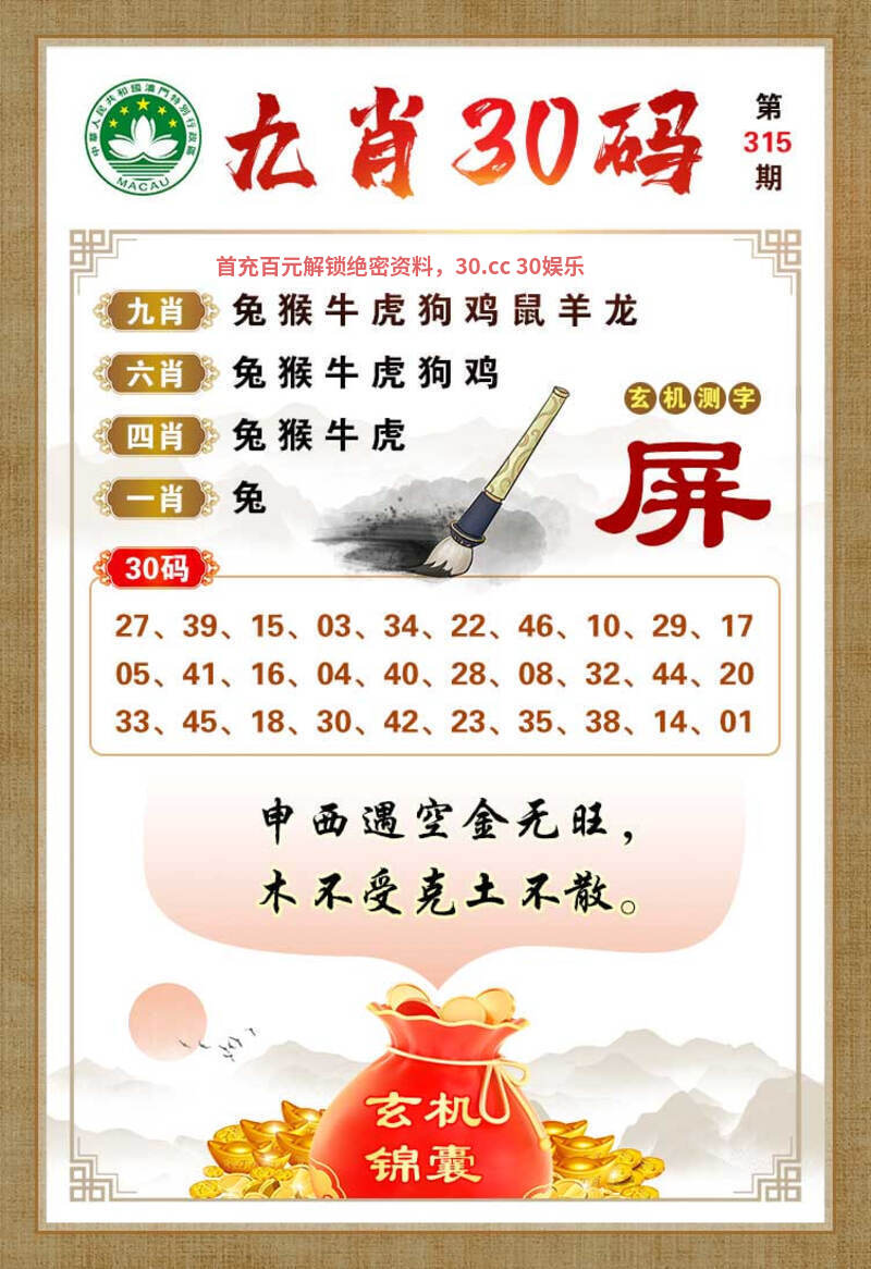 315期:【绝杀二肖】〖牛兔〗开:虎04准