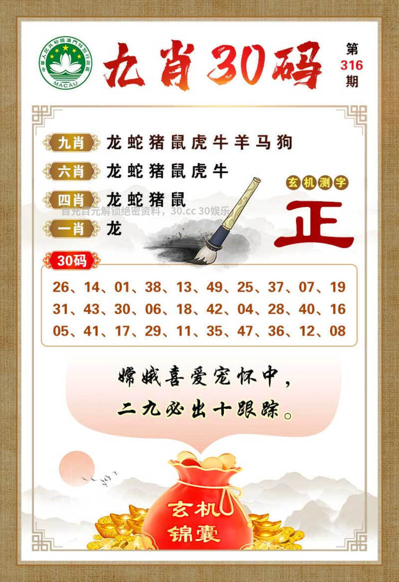 316期:九肖狗鸡猪牛兔鼠蛇虎开:马24
